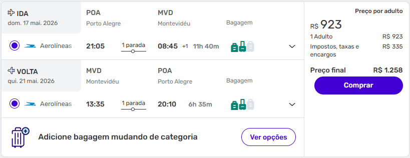 De Porto Alegre para Montevidéu a partir de R$ 1.258 ida e volta.
