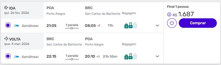 Passagens de ida e volta de Porto Alegre para Bariloche a partir de R$ 1.687