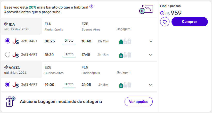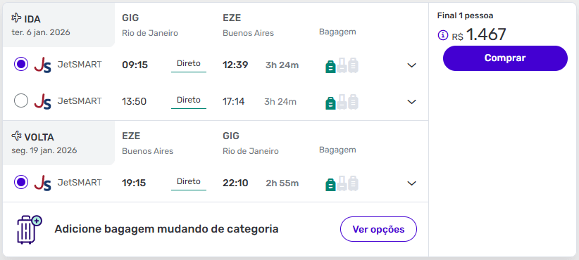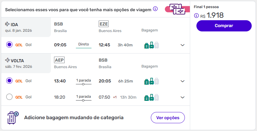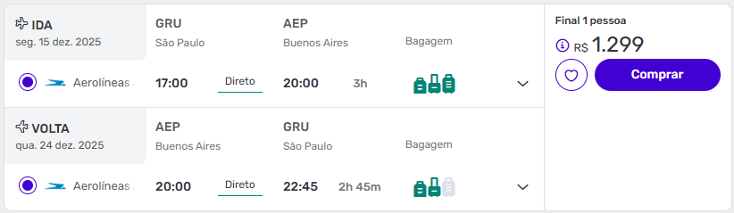 Exemplos de passagens aéreas baratas para Buenos Aires