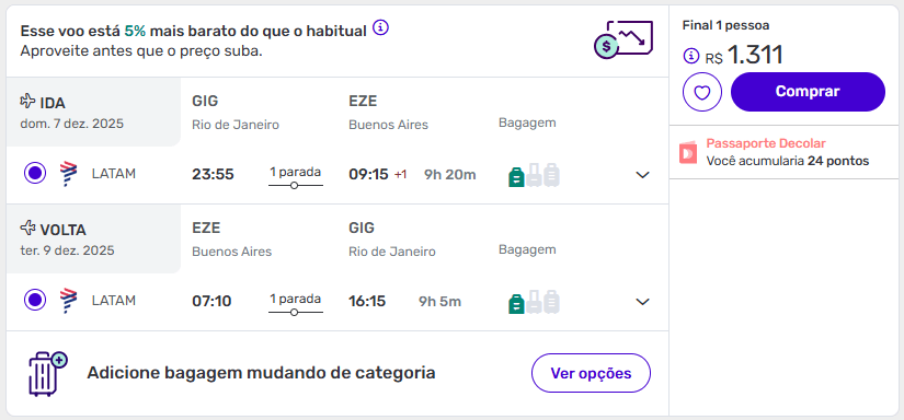 Do Rio de Janeiro para Buenos Aires a partir de R$ 1.311 ida e volta.