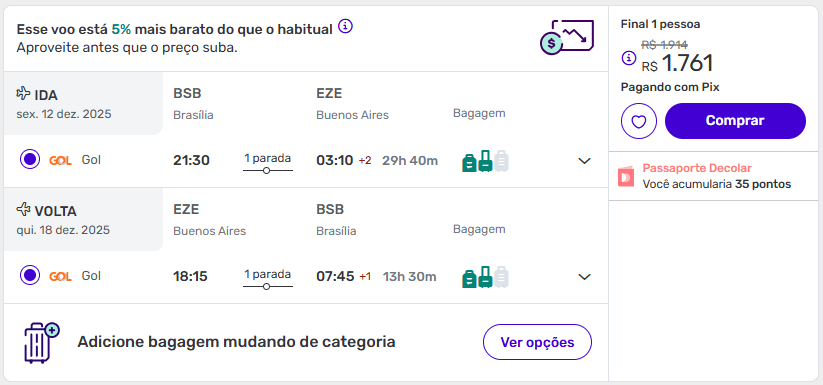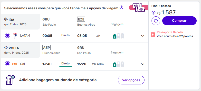 Exemplos de passagens aéreas baratas para Buenos Aires