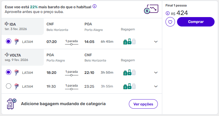De Belo Horizonte para Porto Alegre a partir de R$ 424 ida e volta