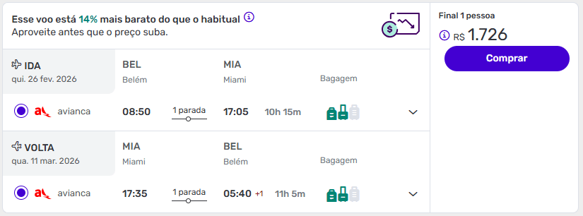 De Belém para Miami a partir de R$ 1.726 ida e volta.