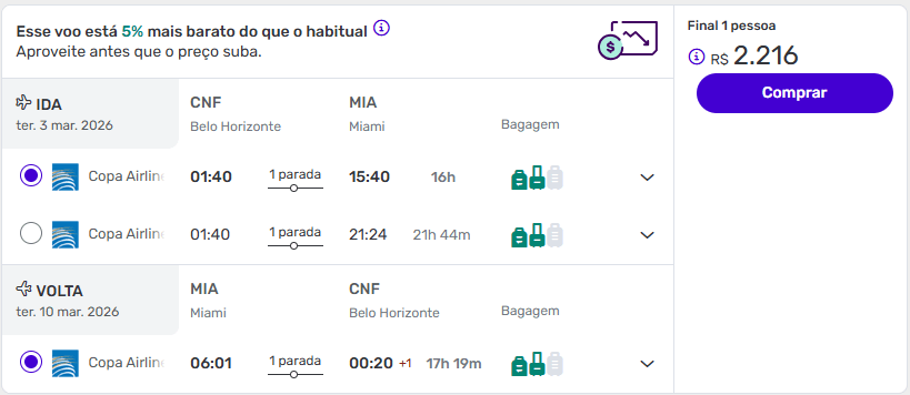 De Belo Horizonte para Miami a partir de R$ 2.216 ida e volta.