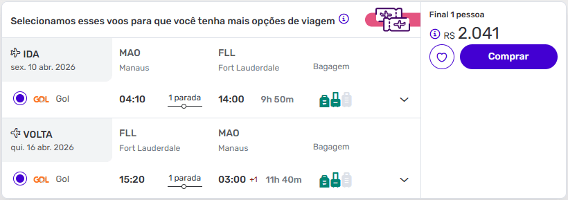 De Manaus para Fort Lauderdale a partir de R$ 2.041 ida e volta.