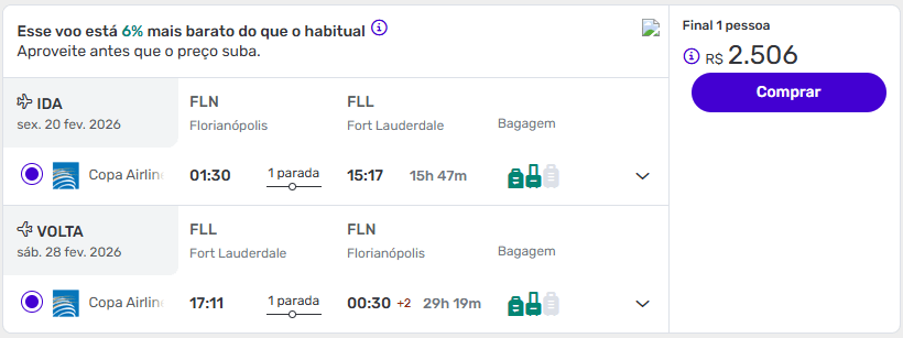 De Florianópolis para Fort Lauderdale a partir de R$ 2.506 ida e volta.