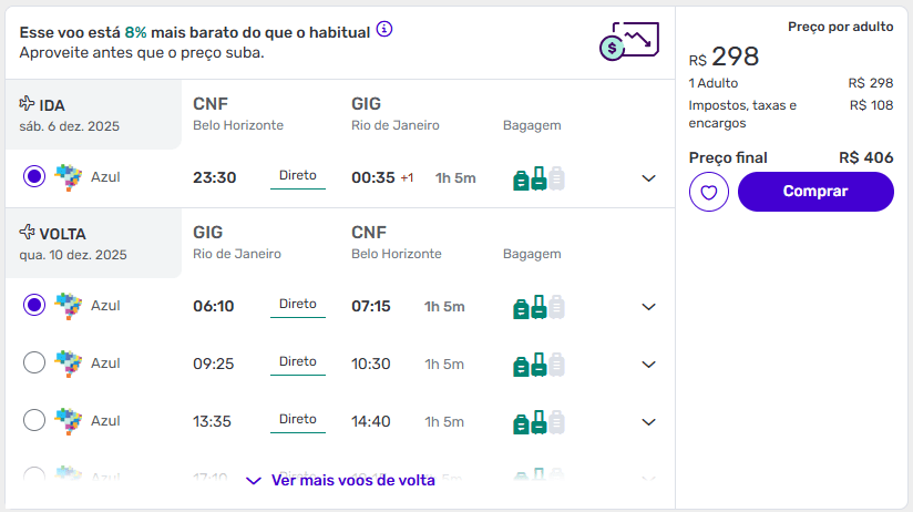 Sugestões de datas com passagens baratas para o Rio de Janeiro