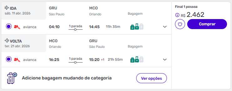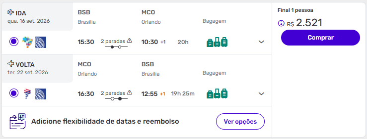 De Brasília para Orlando a partir de R$ 2.521 ida e volta com bagagem.