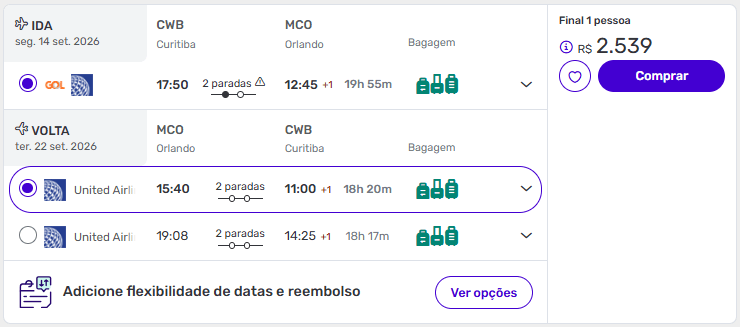 De Curitiba para Orlando a partir de R$ 2.539 ida e volta com bagagem.