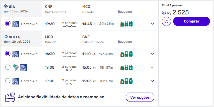 De Belo Horizonte para Orlando a partir de R$ 2.525 ida e volta com bagagem.
