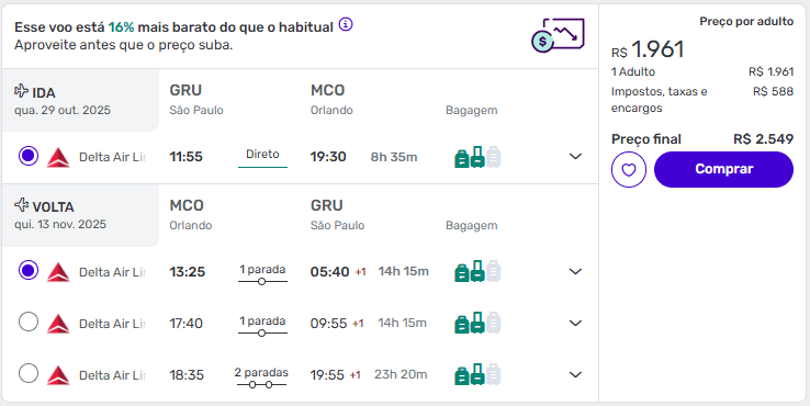 De São Paulo para Orlando a partir de R$ 2.549 ida e volta.