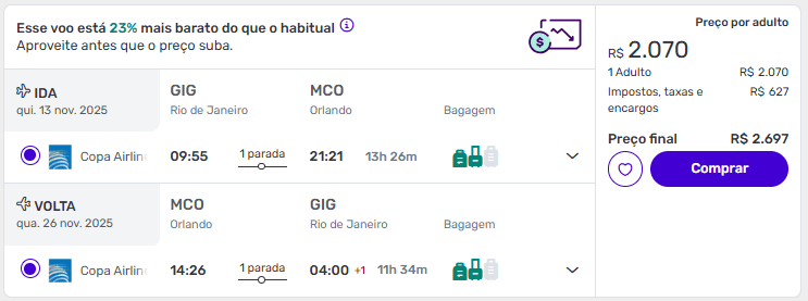 Do Rio de Janeiro para Orlando a partir de R$ 2.697 ida e volta.