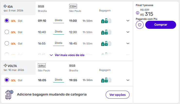 De Brasília para São Paulo a partir de R$ 315 ida e volta