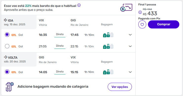 De Vitória para o Rio de Janeiro a partir de R$ 433 ida e volta
