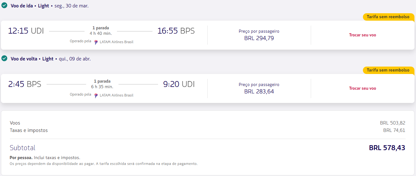 Uberlândia (UDI) → Porto Seguro (BPS)