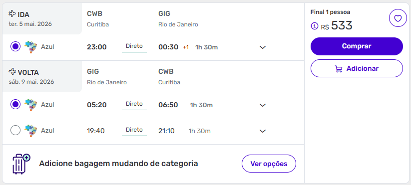 Partindo de Curitiba, essa oferta mantém um bom custo-benefício considerando o padrão da rota.
