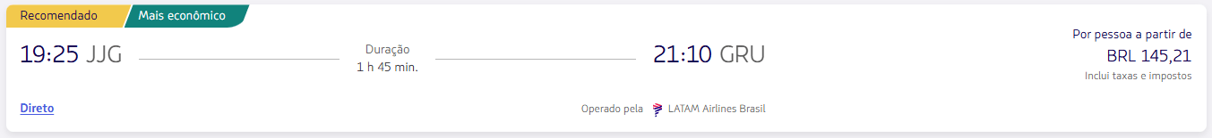 De Jaguaruna (JJG) para São Paulo (GRU) na LATAM a partir de R$ 145,21.