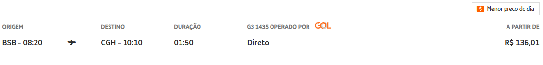 De Brasília (BSB) para São Paulo (CGH) na GOL a partir de R$ 136,01.