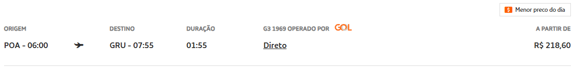 De Porto Alegre (POA) para São Paulo (GRU) na GOL a partir de R$ 218,60.