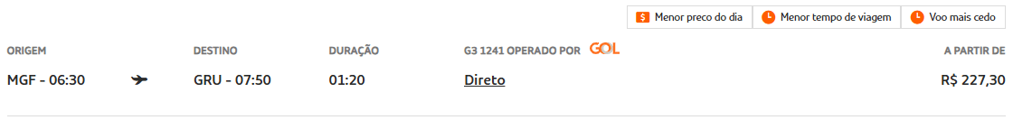 De Maringá (MGF) para São Paulo (GRU) na GOL a partir de R$ 227,30.