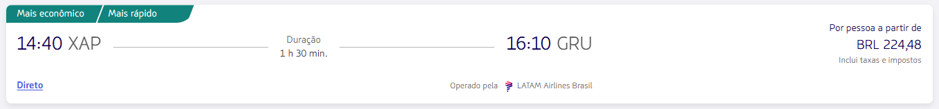 De Chapecó (XAP) para São Paulo (GRU) na LATAM a partir de R$ 224,48.