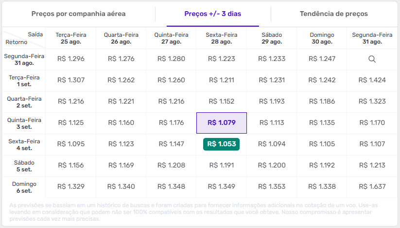 Uma dica importante é utilizar o calendário de 3 dias da Decolar, que permite visualizar rapidamente datas próximas com valores menores. Muitas vezes é possível economizar alterando a viagem em um ou dois dias.