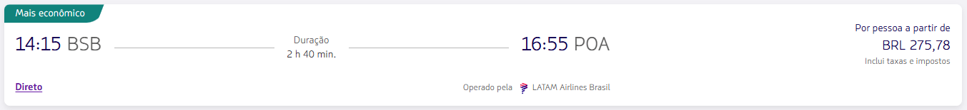 Exemplos de passagens aéreas baratas LATAM para Porto Alegre