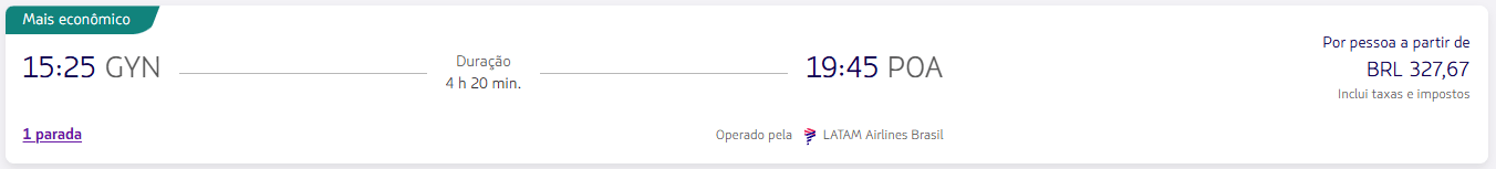Goiânia (GYN) – Porto Alegre (POA) a partir de R$ 327,67
