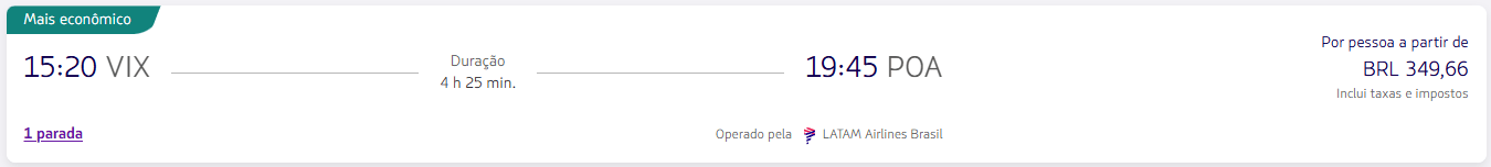 Vitória (VIX) – Porto Alegre (POA) a partir de R$ 349,66
