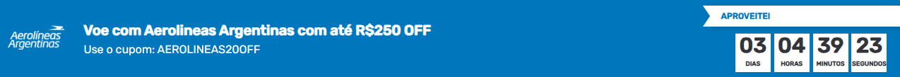 São passagens aéreas de ida e volta a partir de R$ 1.188, com taxas inclusas no site da Decolar, e atenção, se os voos selecionados forem da Aerolíneas, você ainda pode ganhar até R$ 250 de desconto, utilizando o cupom AEROLINEAS20OFF, válido até às 23h59 do dia 21/12.