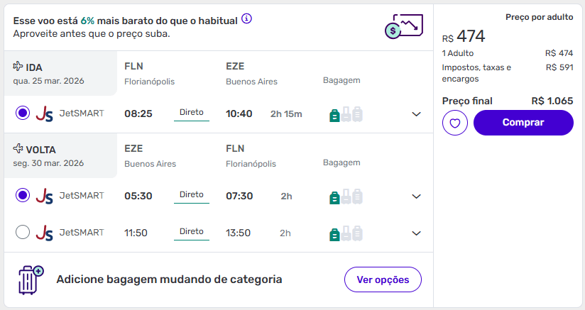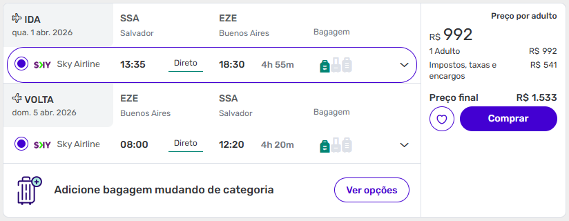 Exemplos de passagens aéreas baratas para Buenos Aires