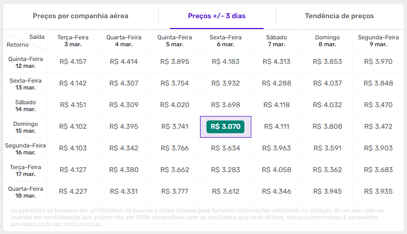 Como identificar datas mais baratas no calendário da Decolar