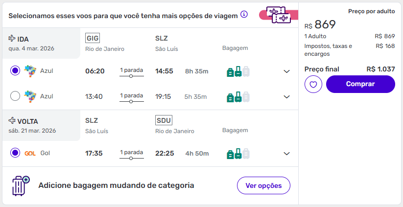 Rio de Janeiro → São Luís a partir de R$ 1.037
