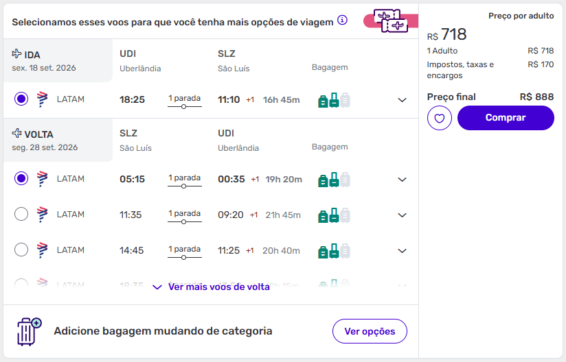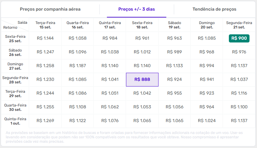 - Teste variações de 1 a 3 dias na ida ou na volta