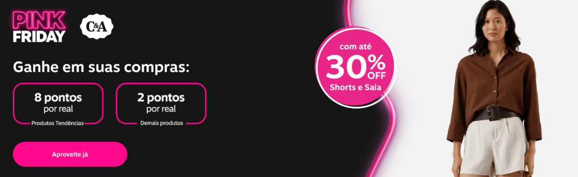 C&A: 8 pontos por real gasto nos produtos tendências e 2 pontos por real nos demais itens.
