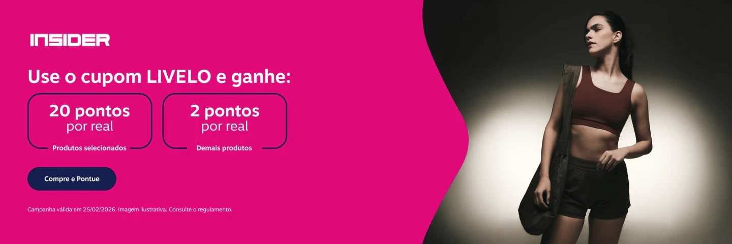 Insider: 20 pontos a cada real gasto em itens selecionados e 2 pontos demais produtos.