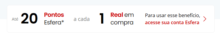 Pontuação turbinada Esfera: Ganhe até 20 pontos por real em compras com parceiros selecionados