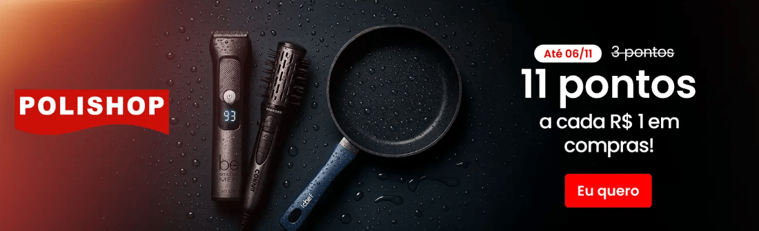 Polishop: 11 pontos pontos a cada R$ 1,00 em compras no site.