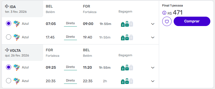 De Belém (BEL) para Fortaleza (FOR) a partir de R$ 471 ida e volta na Decolar.