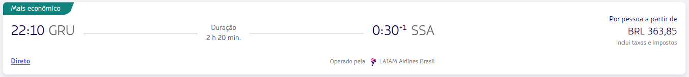 De São Paulo (GRU) para Salvador (SSA) a partir de R$ 363,85 o trecho na LATAM.
