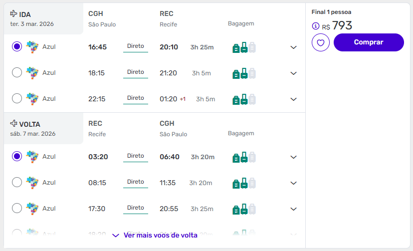 De São Paulo (CGH) para Recife (REC) a partir de R$ 793 ida e volta na Decolar.