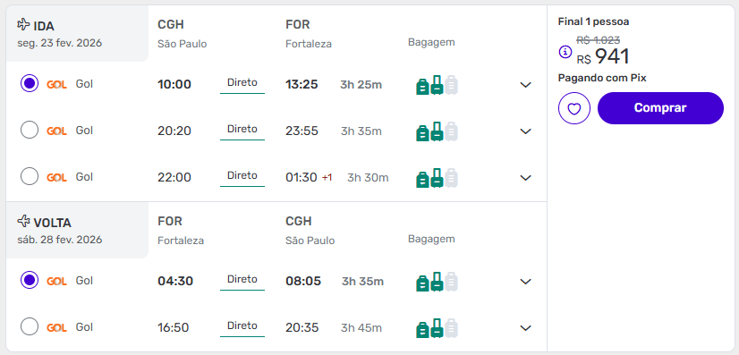 De São Paulo (CGH) para Fortaleza (FOR) a partir de R$ 941 ida e volta na Decolar.