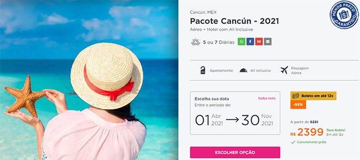 - VIU ISSO?! Fantástico! Pacote Cancún 2021 com aéreo e hotel all inclusive a partir de R$ 3.099 por pessoa!
