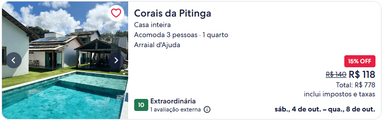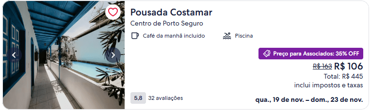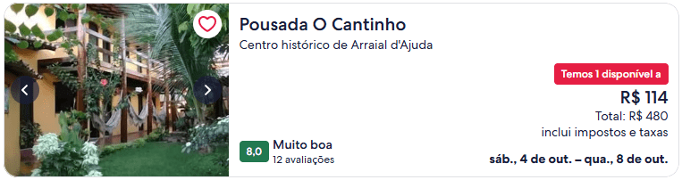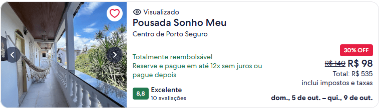 Há muitas outras ofertas de hotéis com preços baixos no site, tanto para Porto Seguro quanto para diversas outras cidades, estados e países. Vale a pena pesquisar com calma, porém é preciso ficar atento à validade das ofertas.