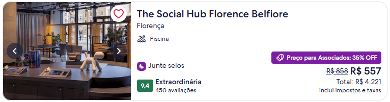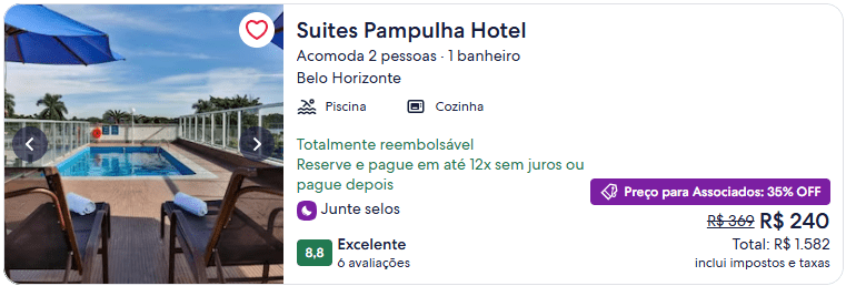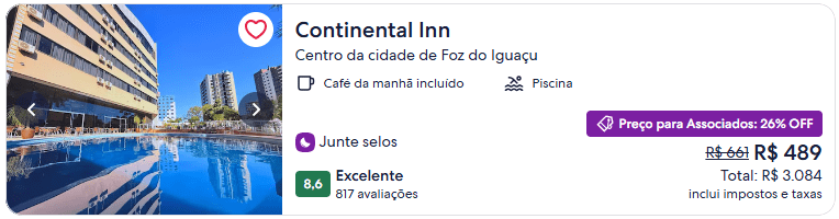 Ao reservar hospedagens participantes, o viajante acumula selos no programa Hoteis.com Rewards. A cada 10 selos, é possível resgatar uma noite de recompensa. As regras podem variar conforme a tarifa escolhida ou o uso de cupons, então é importante verificar as condições antes da compra.