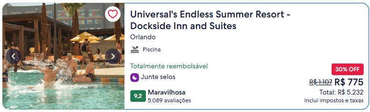 Nas viagens internacionais, muitas hospedagens reservadas pelo Hoteis.com permitem pagamento em reais, evitando cobrança de IOF e reduzindo a exposição à variação cambial. Antes de concluir a reserva, vale conferir se a oferta está sinalizada como cobrança em moeda local.