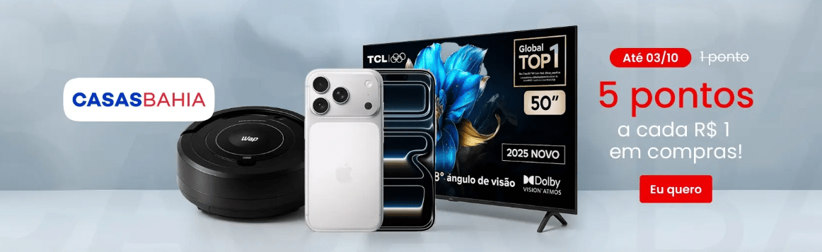 Casas Bahia: 5 pontos a cada R$ 1,00 gasto no site
