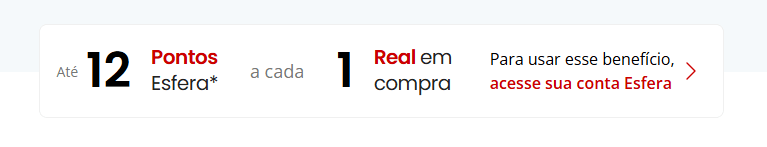 12 pontos a cada R$ 1,00 e frete grátis na compra de produtos selecionados no site.