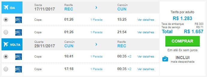 Na imagem: passagens aéreas em promoção saindo de Recife para Cancún a partir de R$1.657 ida e volta e reparem que este é o preço total com todas as taxas inclusas! Imperdível! E é só um exemplo.