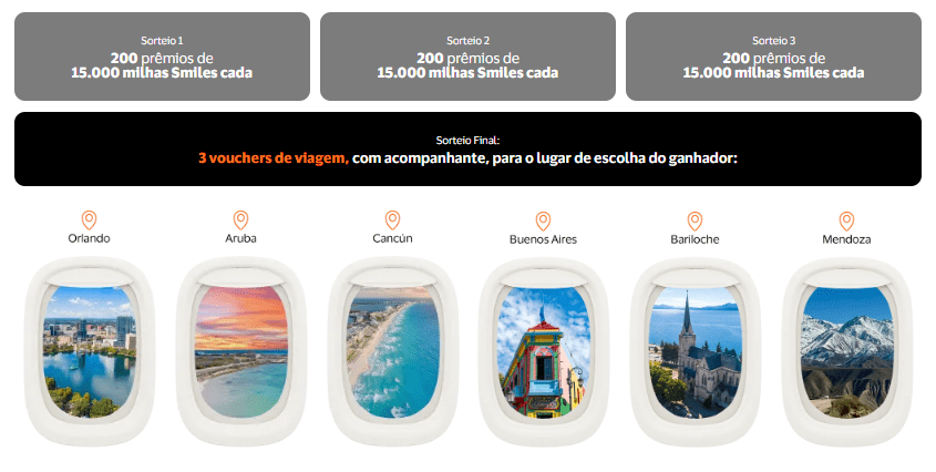 - 200 prêmios de 15.000 milhas Smiles, totalizando 600 ganhadores ao longo da campanha.